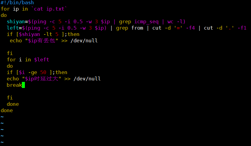 1、写个shell脚本,要求ping一批服务器,每台服务器ping5个包,取出时延>=50ms或丢包的服务器