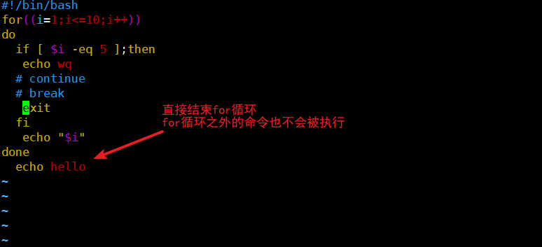 在循环语句中,可以用break语句跳出循环,用continue语句结束本次循环,用exit退出脚本