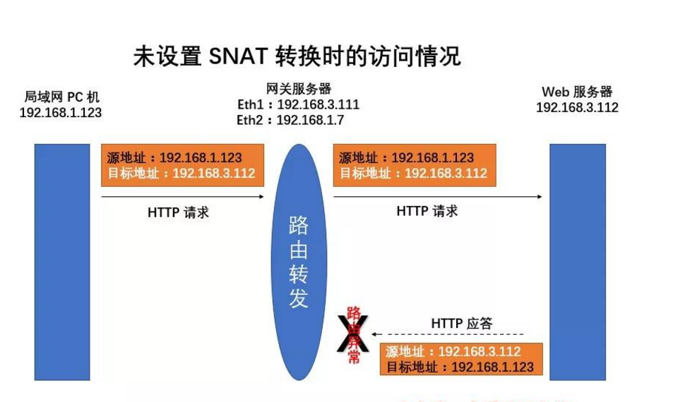 已设置SNAT转换时的访问情况: