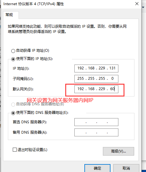 1、内网PC端win10设置内网IP以及网关