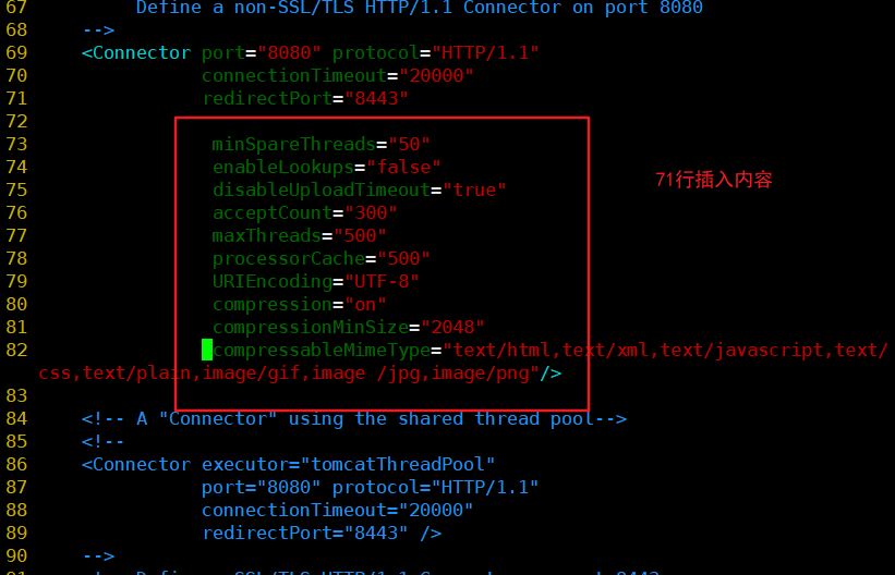 【compressableMimeType】压缩类型,指定对哪些类型的文件进行数据压缩。