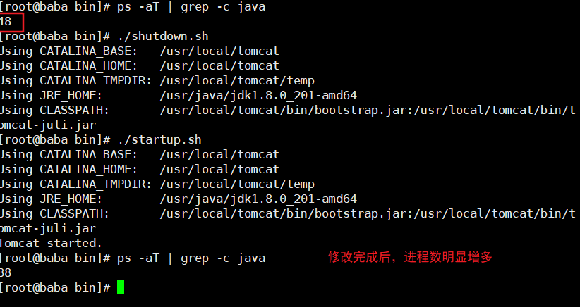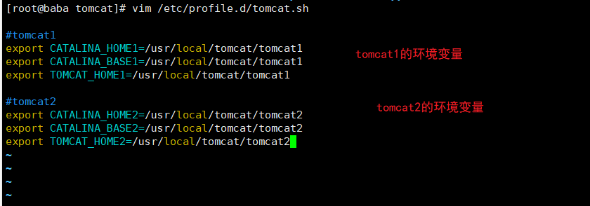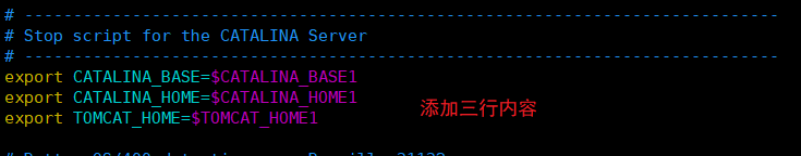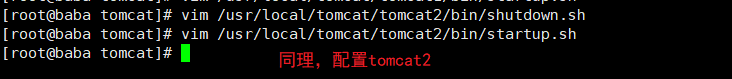 4、修改各Tomcat实例中的startup.sh和shutdown.sh文件,添加环境变量