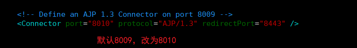 第二个连接器默认监听8009端口,负责和其他HTTP服务器建立连接。在把Tomcat与其他HTTP服务器集成时,就需要这个连接器。