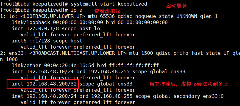优先级高的服务器会通过ip命令为自己的电脑配置一个提前定义好的浮动IP地址