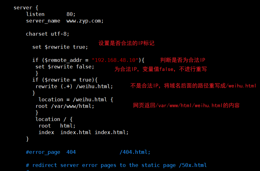 rewrite /weihu.html 按照修改域名后的url直接跳转到对应的location