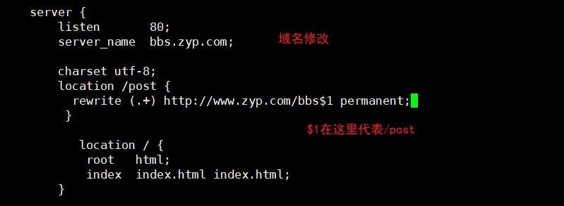 rewrite只能放在server{},location{},if{}中,并且默认只能对域名后边的除去传递参数外的字符串起作用