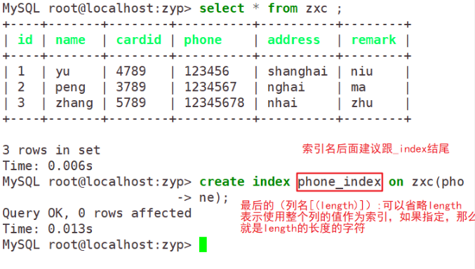 (单列索引与多列索引):可以是单列上创建的索引,也可以是在多列上创建的索引。需要满足最左原则,因为select语句的where条件是依次从左往右执行的,所以在使用select 语句查询时where条件使用的字段顺序必须和组合索引中的排序一致,否则索引将不会生效
