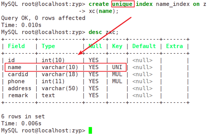 - 通过创建唯一性索引,可以保证数据表中每一行数据的唯一性