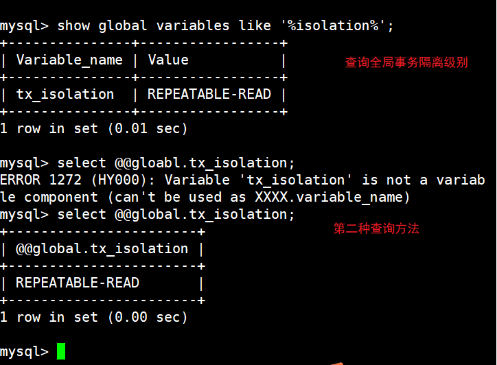 - 不可重复读:一个事务内两个相同的查询却返回了不同数据。这是由于查询时系统中其他事务修改的提交而引起的