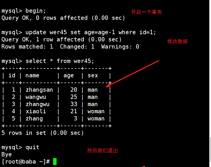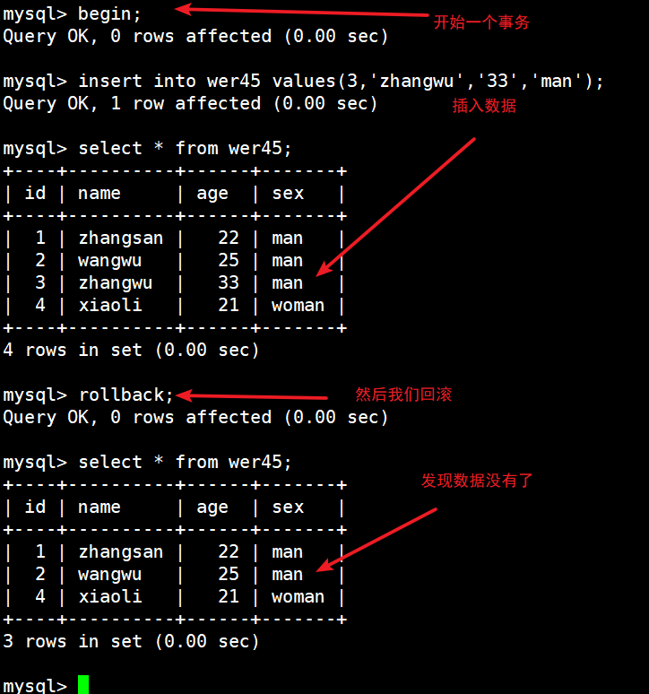 - 事务能够提高在向表中更新和插入信息期间的可靠性