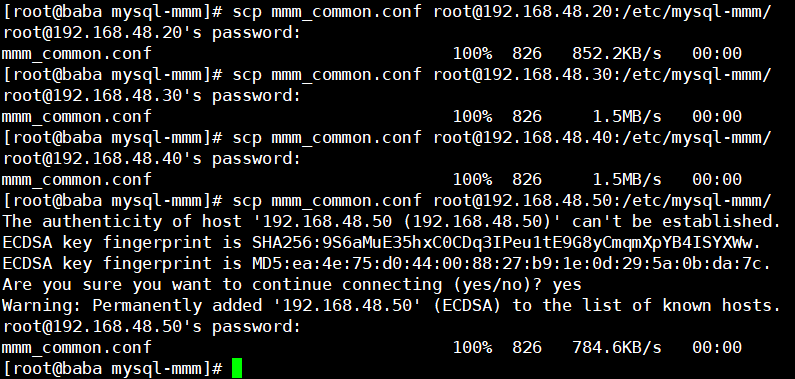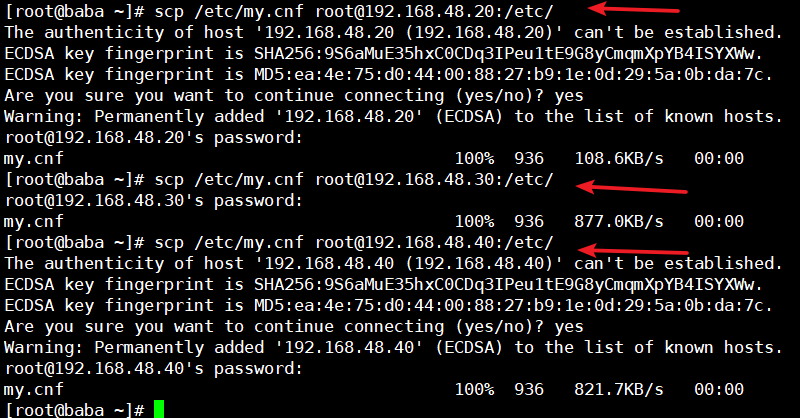 2、把配置文件复制到其它 3 台数据库服务器上并启动服务器