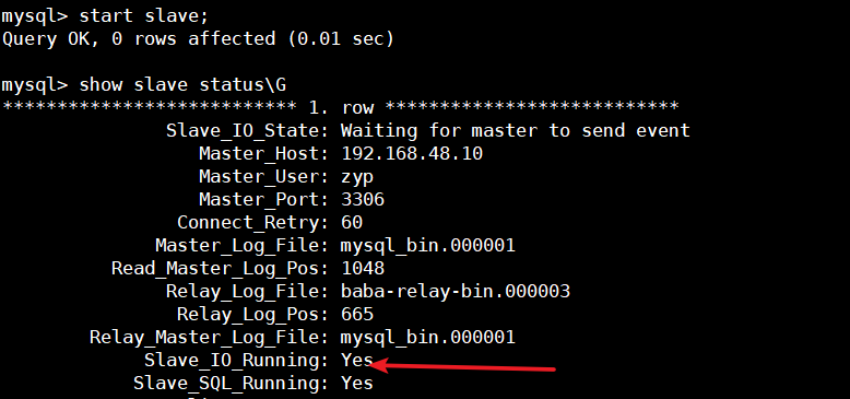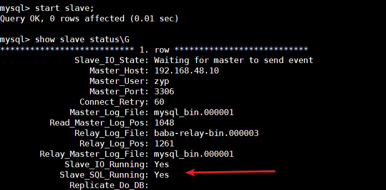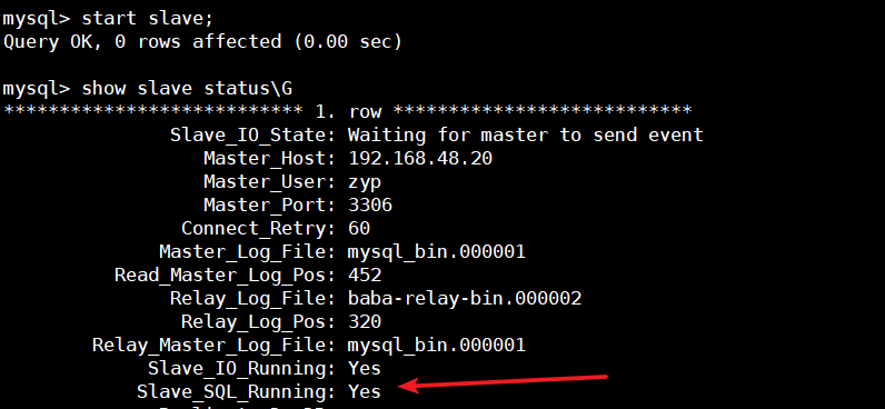 (2)在两台主服务器上查看,记录日志文件名称和同步点