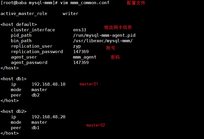 修改所有数据库服务器的代理配置文件 mmm_agent.conf