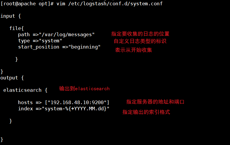 3、在logstash组件所在的节点上新建一个logstash配置文件