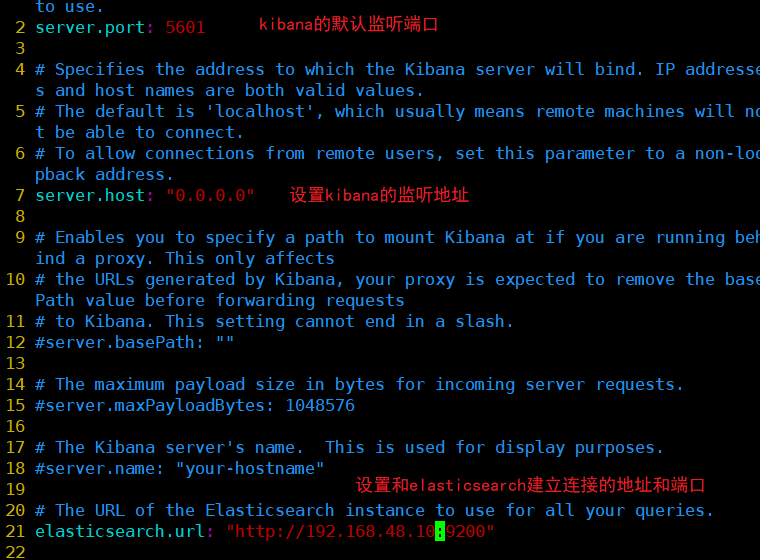 2、设置Kibana的主配置文件