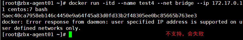 直接使用bridge模式,是无法支持指定IP运行docker的(如下)