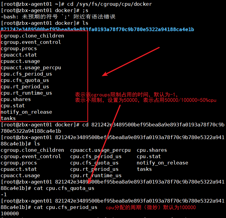 而容器的CPU配额必须不小于1ms,即--cpu-quota的值必须>=1000。
