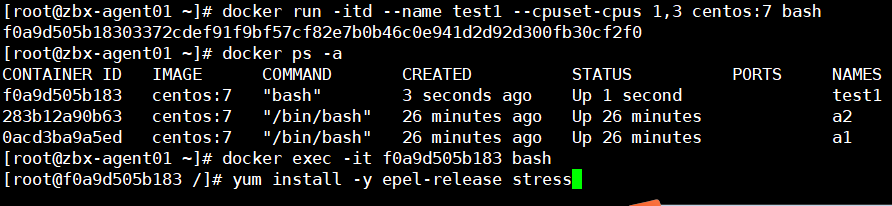 使用--cpu-period即可设置调度周期,使用--cpu-quota即可设置在每个周期内容器能使用的CPU时间。两者可以配合使用。