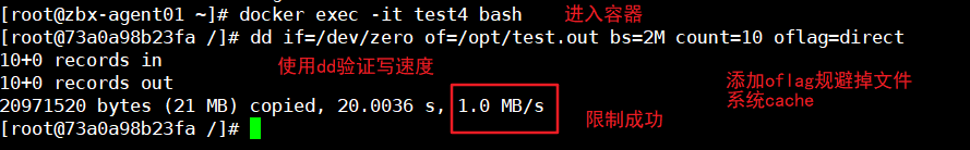 如果--memory-swap的值和-m值相同,则容器不能使用swap