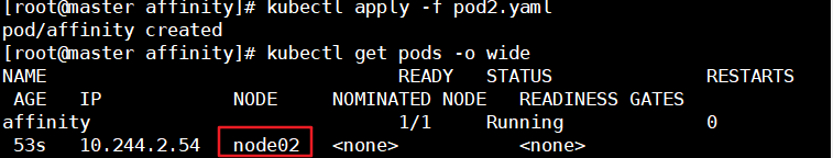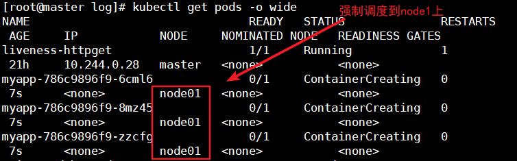pod.spec.nodeName 将 Pod 直接调度到指定的 Node 节点上,会跳过 Scheduler 的调度策略,该匹配规则是强制匹配: