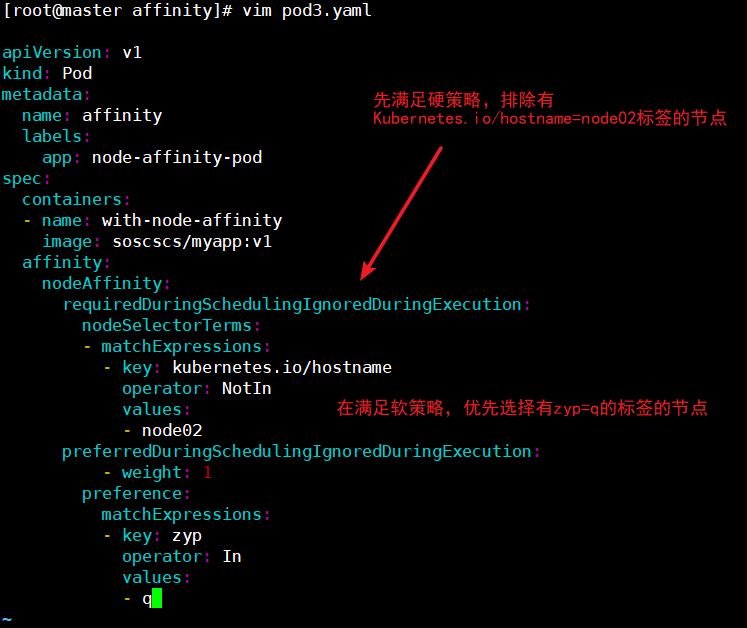 ●requiredDuringSchedulingIgnoredDuringExecution:硬策略