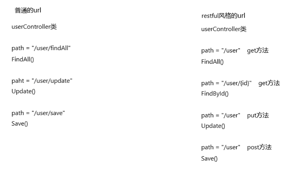 那么什么时rest风格的URL呢,一般rest风格都称为restful风格,它其实就是一种规范,区别于我们平时普通的url,见下图