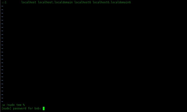 [bob@localhost ~]$ vim /etc/hosts