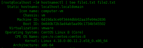 [root@localhost ~]# hostnamectl | tee file1.txt file2.txt