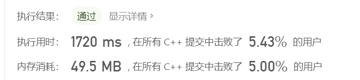 class Solution { private: // 最长递增子序列的求解 int LengthOfLIS(vector<int>& nums) { int n = nums.size(); if (n == 0) { return 0; } // 最大的长度记录 int len = 1; // 直接预留了一,所以是n+1 填充时候也从1开始 int* d = new int[n+1]; d[len] = nums[0]; for (int i = 1; i < n; ++i) { // 递增则直接放在最后面 if (nums[i] > d[len]) { d[++len] = nums[i]; } else { // 二分法,找到这个可以更新的位置,但不破坏原来的顺序 int l = 1; int r = len; // pos定位为比nums[i]小的数的位置,如果找不到 pos 就是0,对应更新的是 pos+1 // 这里核心思想就是一直维持数组的递增的顺序 依靠len最大化来保存结果 // 而如果后续有更多递增数字,则会继续扩大递增的数组,len继续增大 int pos = 0; while (l <= r) { int mid = (l + r) >> 1; if (d[mid] < nums[i]) { pos = mid; l = mid + 1; } else { r = mid - 1; } } d[pos + 1] = nums[i]; } } return len; } public: int maxEnvelopes(vector<vector<int>>& envelopes) { // 按照第一维升序排列, 第二维相等的时候 第二维降序排列 sort(envelopes.begin(), envelopes.end(), [](const vector<int>& a, const vector<int>& b) { if (a[0] != b[0]) { return a[0] < b[0]; } else { return a[1] >= b[1]; } }); int n = envelopes.size(); vector<int> nums(n); for (int i = 0; i < n; ++i) { nums[i] = envelopes[i][1]; } return LengthOfLIS(nums); } }; 作者:ffreturn 链接:https://leetcode-cn.com/problems/russian-doll-envelopes/solution/c999de-zui-da-di-zeng-zi-xu-lie-de-jie-f-apzw/ 来源:力扣(LeetCode) 著作权归作者所有。商业转载请联系作者获得授权,非商业转载请注明出处。