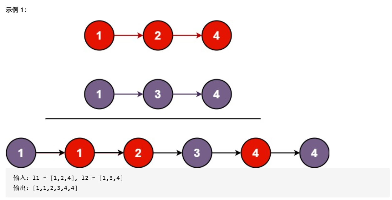 将两个升序链表合并为一个新的 升序 链表并返回。新链表是通过拼接给定的两个链表的所有节点组成的。