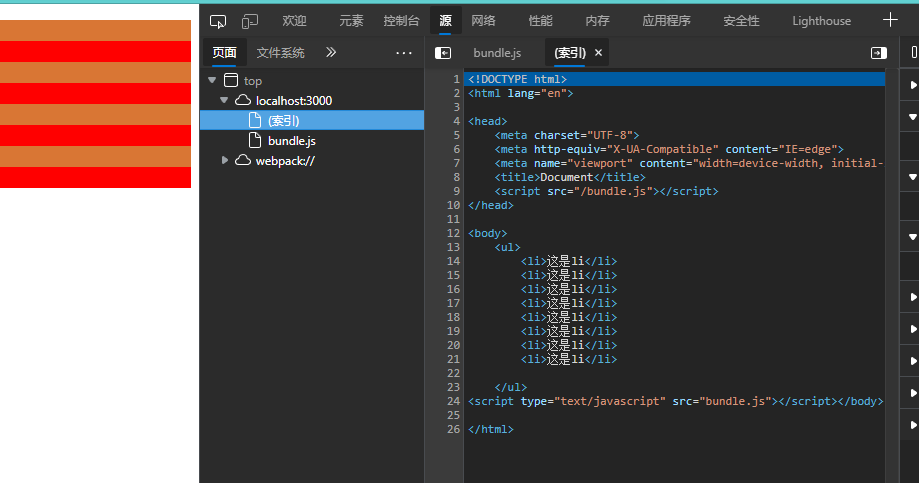 2.把打包好的bundle.js自动追加到页面中 如图: