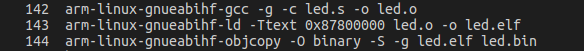 然后将汇编的led.o 链接到Ttext指定的链接地址 也就是芯片的外部DDR的起始地址0x80000000+0x0780(uboot)