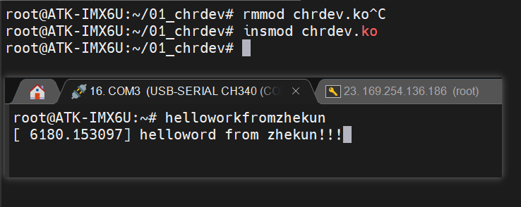3.上传到开发板 insmod chrdev.ko 加载驱动程序