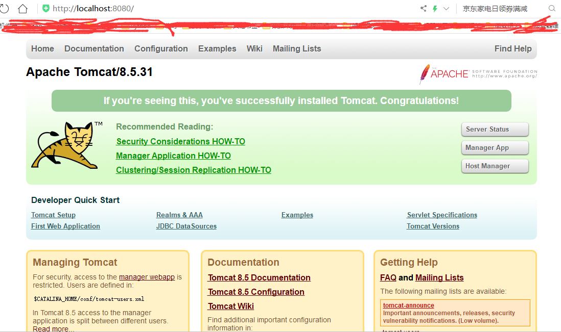 在浏览器中输入http://localhost:8080或http://127.0.0.1:8080