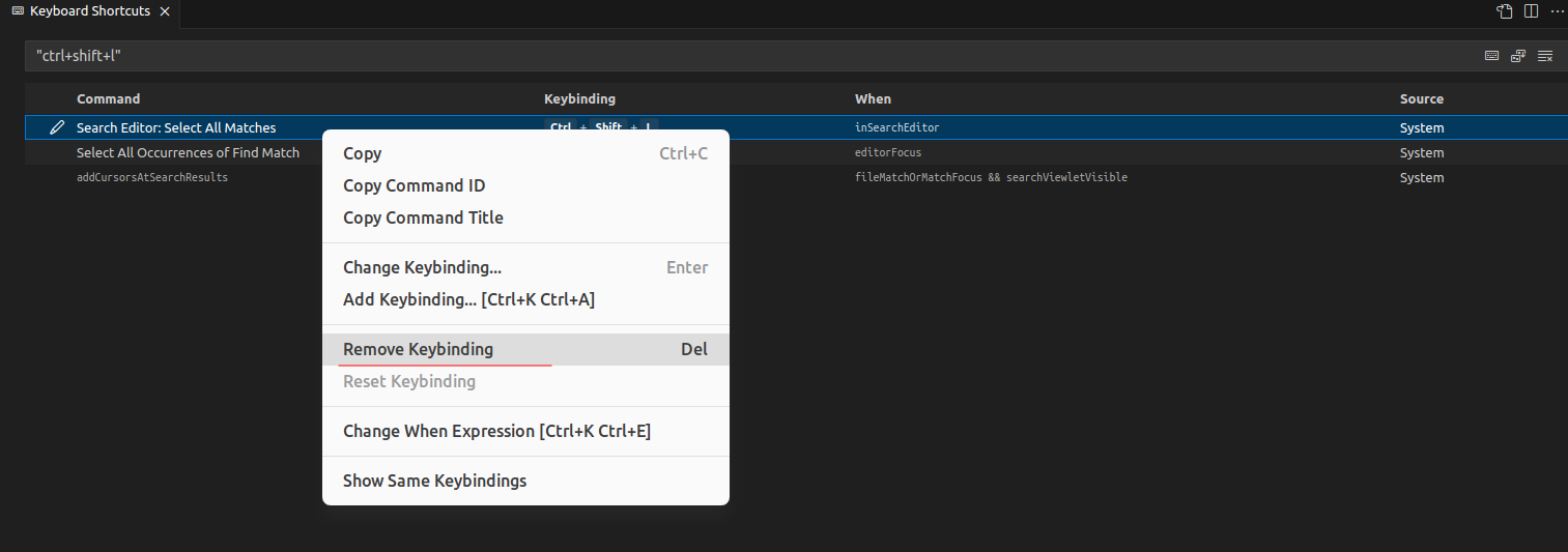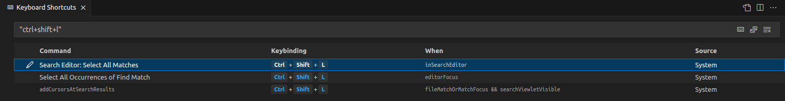Restoring the existing "Ctrl+Shift+L" keyboard shortcuts:
