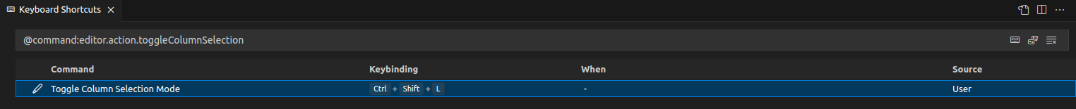 The keyboard shortcut "Ctrl+Shift+L" used to work well to get into column editing mode, but it isn't working now.