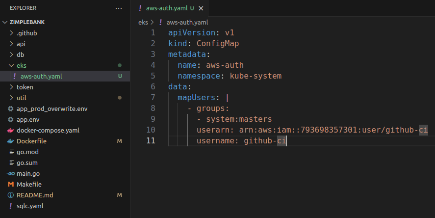 zzh@ZZHPC:~$ aws eks update-kubeconfig --name zimple-bank --region ap-southeast-2 An error occurred (AccessDeniedException) when calling the DescribeCluster operation: User: arn:aws:iam::793698357301:user/github-ci is not authorized to perform: eks:DescribeCluster on resource: arn:aws:eks:ap-southeast-2:793698357301:cluster/zimple-bank