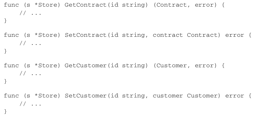 By using any, we lose some of the benefits of Go as a statically typed language. Instead, we should avoid any types and make our signatures explicit as much as possible. Regarding our example, this could mean duplicating the Get and Set methods per type: