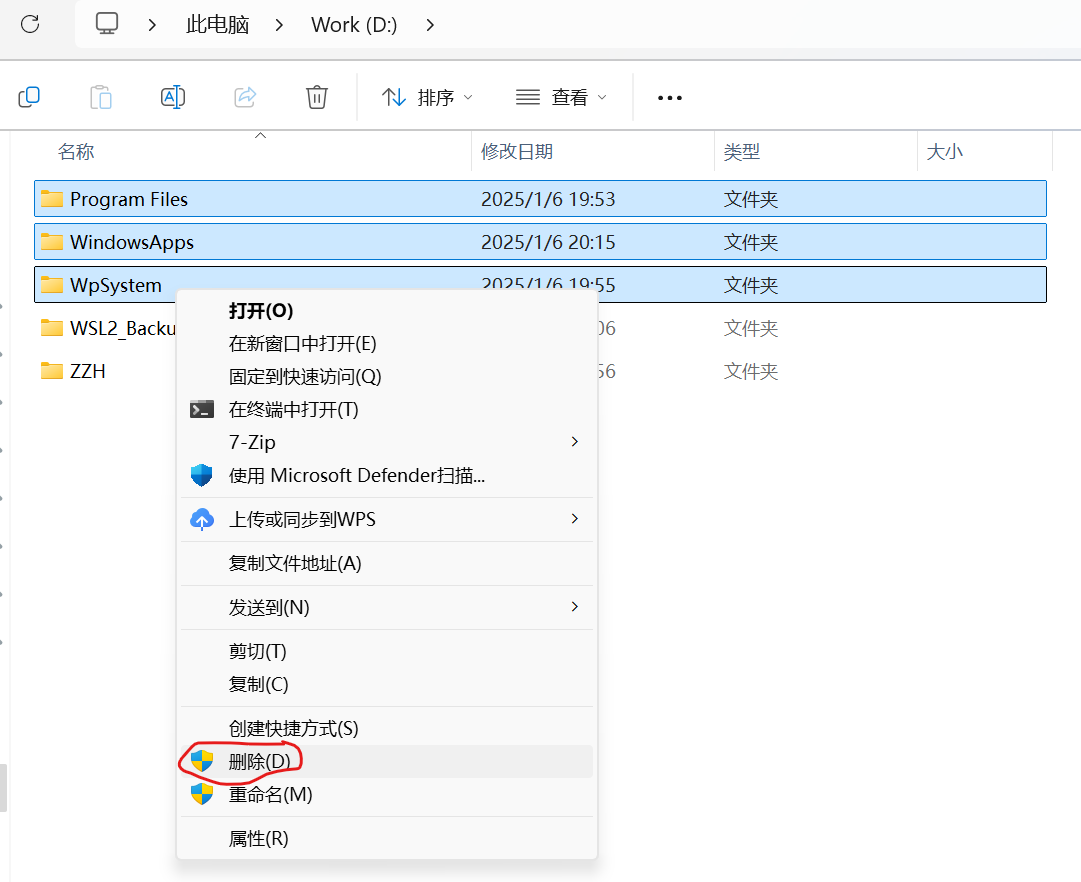 C:\Program Files\WSL是系统自带的,与下面WSL功能是否启用无关,不能将基删除或移走,否则系统服务WSL Service将无法运行,wsl命令也无法执行。