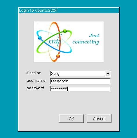 The Xrdp service is successfully installed and ready to connect. On your Windows client, open the RDP client and enter the IP address of the Ubuntu system.