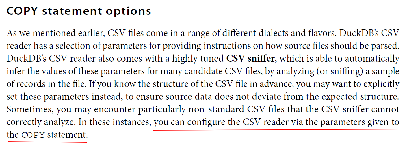 │ Delimiter │ Quote │ Escape │ NewLineDelimiter │ Comment │ SkipRows │ HasHeader │ Columns │ DateFormat │ TimestampFormat │ UserArguments │Prompt │