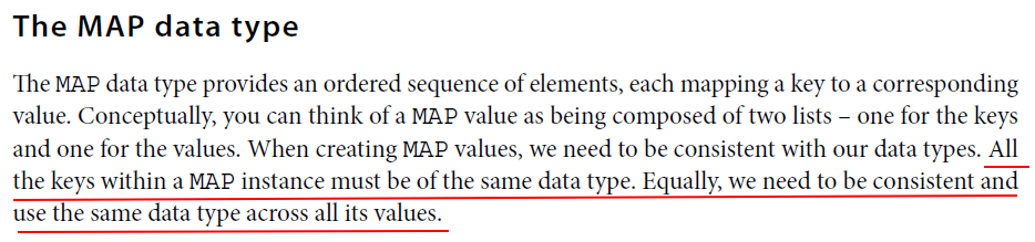 D SELECT movie_release_map FROM movies; ┌───────────────────────────────────────────────────────────────────────────┐ │ movie_release_map │ │ map(varchar, integer) │ ├───────────────────────────────────────────────────────────────────────────┤ │ {Quantum of Solace=2008, Skyfall=2012, Spectre=2015, No Time to Die=2021} │ └───────────────────────────────────────────────────────────────────────────┘