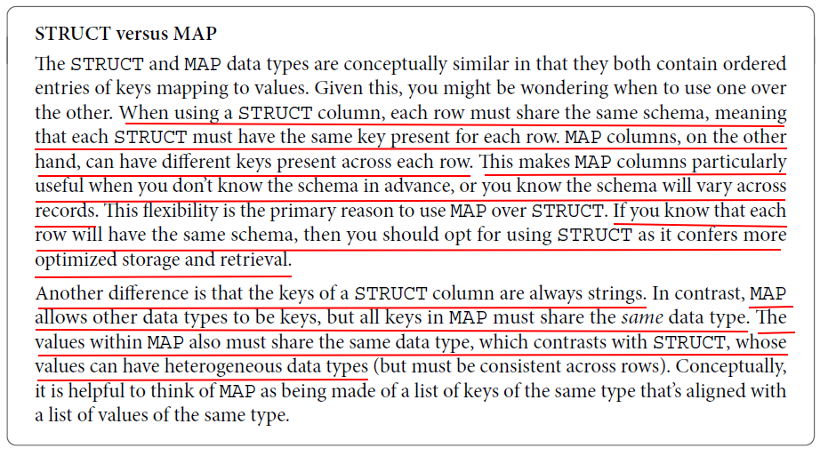 D SELECT { movie: 'No Time to Die', release_year: 2021, box_office: 771.2 } AS struct_movie; ┌──────────────────────────────────────────────────────────────────────┐ │ struct_movie │ │ struct(movie varchar, release_year integer, box_office decimal(4,1)) │ ├──────────────────────────────────────────────────────────────────────┤ │ {'movie': No Time to Die, 'release_year': 2021, 'box_office': 771.2} │ └──────────────────────────────────────────────────────────────────────┘