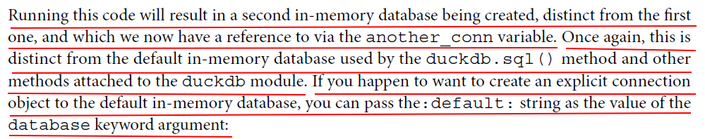 custom_conn = duckdb.connect( config={ "memory_limit": "10GB", "threads": 4 } )