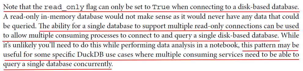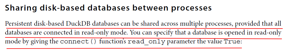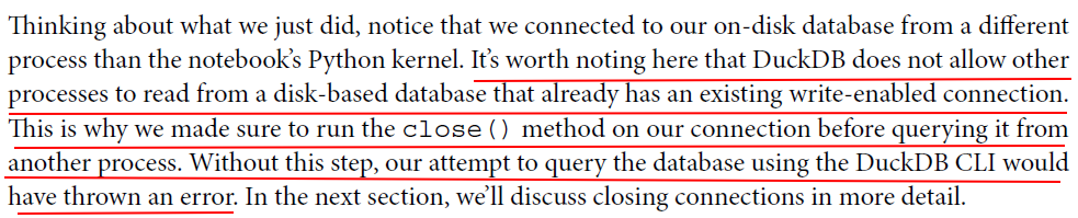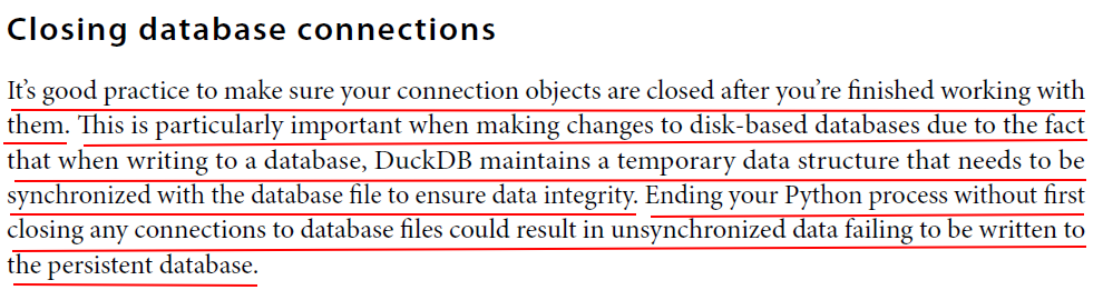 conn = duckdb.connect(database="quack.duckdb", read_only=True) # query the database here... conn.close()