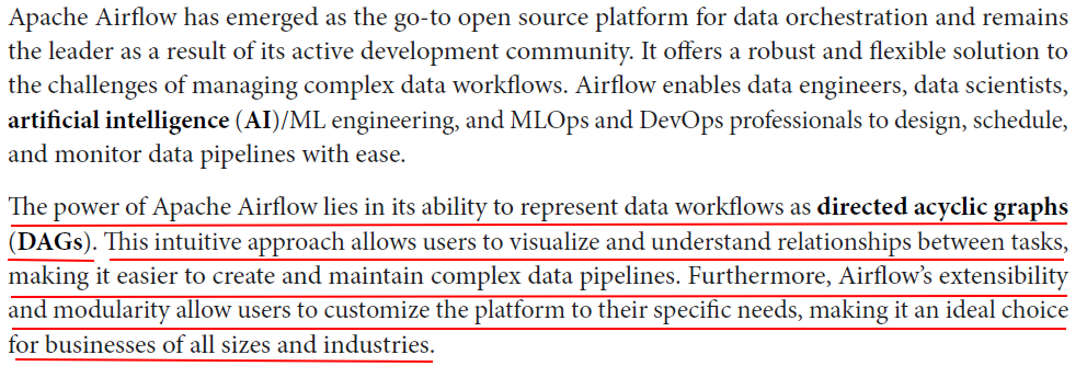 Apache Airflow is known within the data engineering community as the go-to open source platform for “developing, scheduling, and monitoring batch-oriented workflows.”