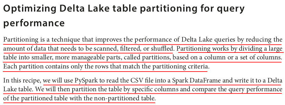 non_partitioned_query = "spark.sql(\"SELECT country_code, gender, COUNT(*) AS employees FROM delta.`/zdata/Github/Data-Engineering-with-Databricks-Cookbook-main/data/tmp/large_delta` GROUP BY ALL ORDER BY employees DESC\").show()" non_partitioned_time = timeit.timeit(non_partitioned_query, number=1, globals=globals()) print(f"Non-partitioned query time: {non_partitioned_time} seconds")