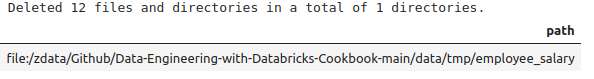 %%sparksql VACUUM delta.`/zdata/Github/Data-Engineering-with-Databricks-Cookbook-main/data/tmp/employee_salary` RETAIN 0 HOURS