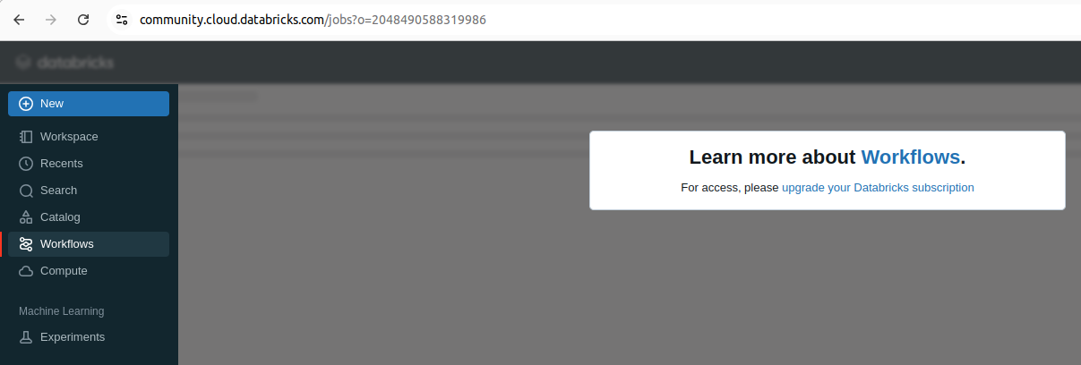 In Databricks Community Edition, you cannot use Workflows because it is a premium feature that requires an upgraded subscription.