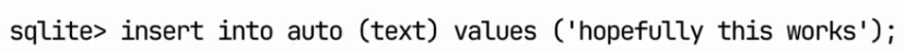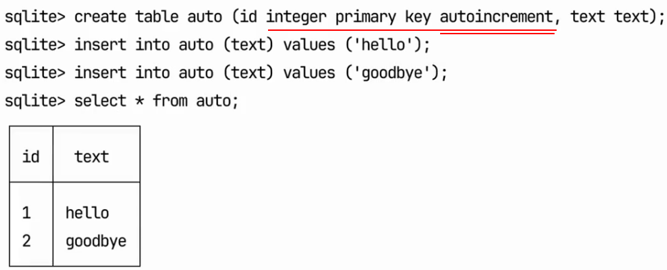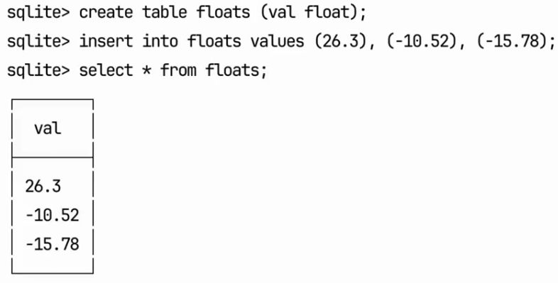 sqlite> SELECT true; 1 sqlite> SELECT false; 0